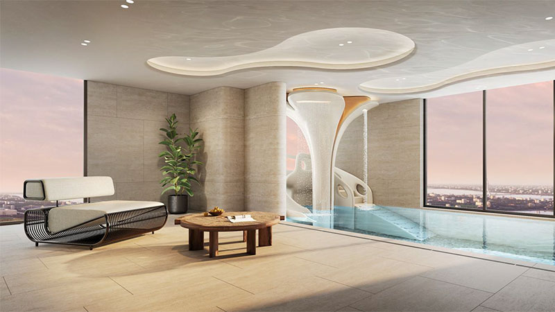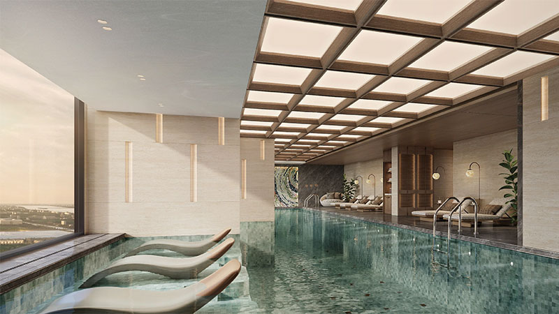 Cũng tại Lumiere Essence Peak, chuỗi 53 tiện ích “indoor” & “outdoor” mang âm hưởng nghệ thuật độc bản được quy tụ trong không gian “All in one” trung tâm đô thị, sẽ mang đến cho cư dân nơi đây những trải nghiệm sống đẳng cấp. Nổi bật trong đó phải kể đến: cụm bể bơi người lớn – trẻ nhỏ – jacuzzi mang chủ đề nghỉ dưỡng nằm liên hoàn, sân bóng bàn, sân pickle ball, sân chơi trẻ nhỏ, lounge thư giãn & không gian cafe ngoài trời, đường dạo bộ vv… được chủ đầu tư Masterise Homes khéo léo thiết kế xen kẽ giữa những khu vườn cây xanh rợp bóng xung quanh 2 tòa Peak 1 & Peak 2.