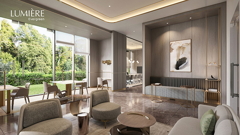 Nội thất bàn giao căn hộ Lumiere Smart City được hoàn thiện theo tiêu chuẩn liền tường cao cấp, bao gồm: sàn gỗ, điều hòa âm trần Daikin, tủ bếp, thiết bị bếp Hafele, thiết bị vệ sinh Kohler, cửa gỗ chống cháy, khóa cửa Hafele, ban công kính cường lực, cửa sổ kính Low-E. Nhìn chung, nội thất bàn giao Lumiere Evergreen khá tương đồng với Masteri West Heights khi tất cả đều được chọn lựa từ các thương hiệu hàng đầu thế giới.
